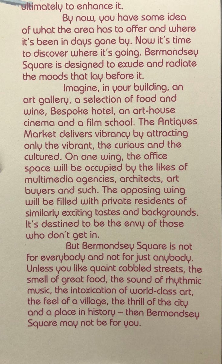 The provision of a cultural space was one of the original planning conditions for the development of Bermondsey Square, and there is no justification for moving away from this vision.