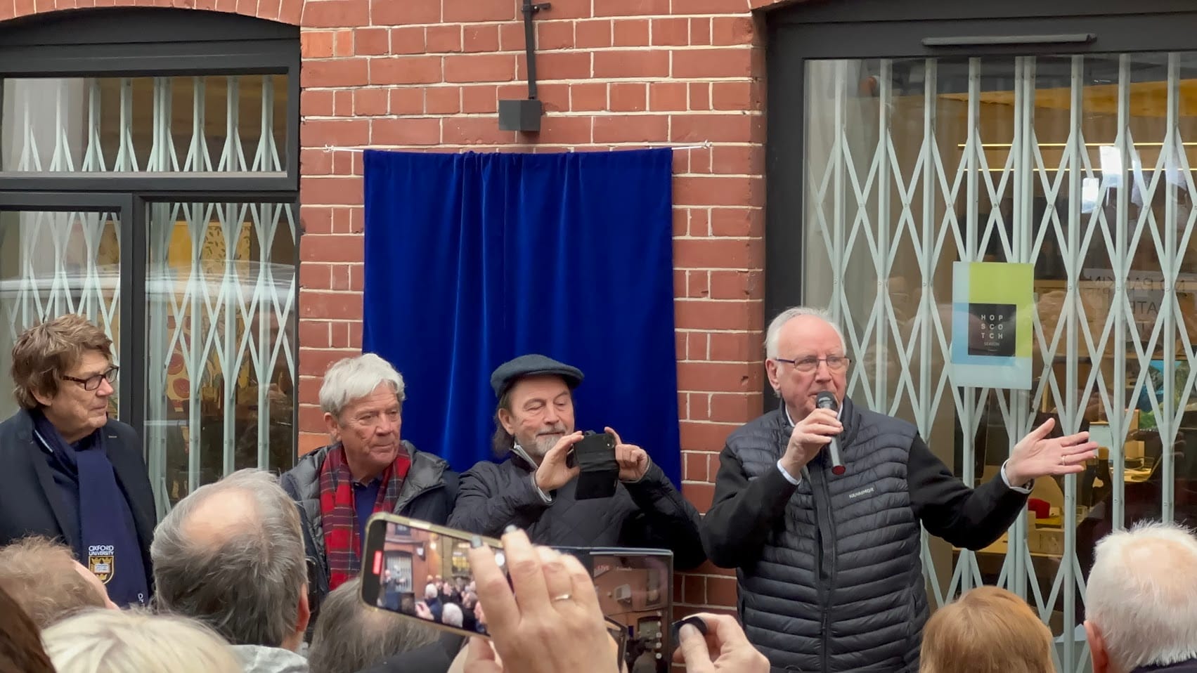 Radio DJ Mike Read compered the unveiling ceremony at which the three music industry legends were reunited.